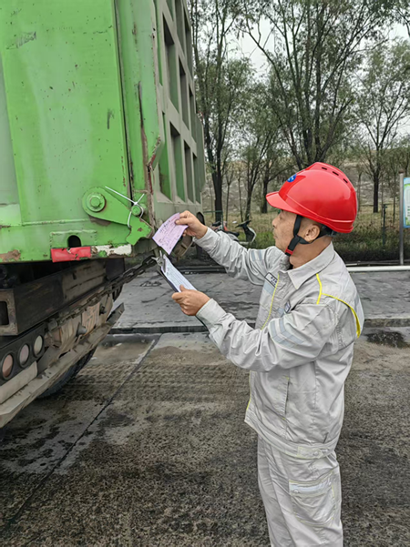 圖為:郭慶賀在鵬源碼頭核對車輛鉛封,嚴把煤炭數(shù)質(zhì)量關(guān)。